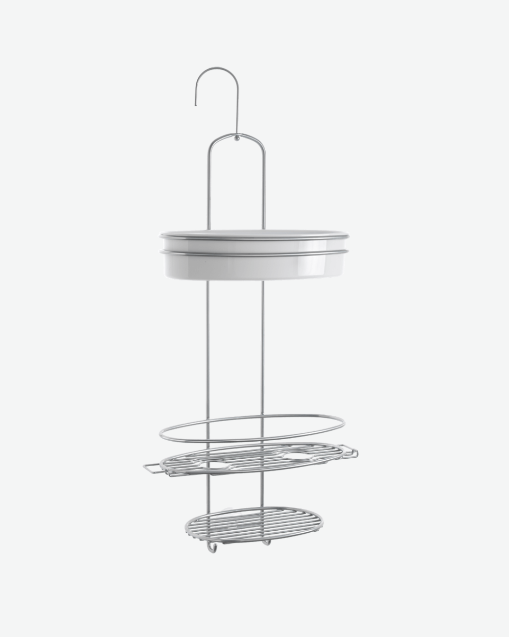 Organize your shower essentials with the Metaltex Orbit Shower Caddy in a modern chrome-white finish. Designed with a spacious PP bowl and a hanging hook, it provides convenient storage for soaps, shampoos, and more. The strong suction cup ensures secure attachment to tiles or glass, while the Chrometherm® coating offers excellent rust resistance and shine. A sleek, functional addition to any bathroom—Made in Italy.